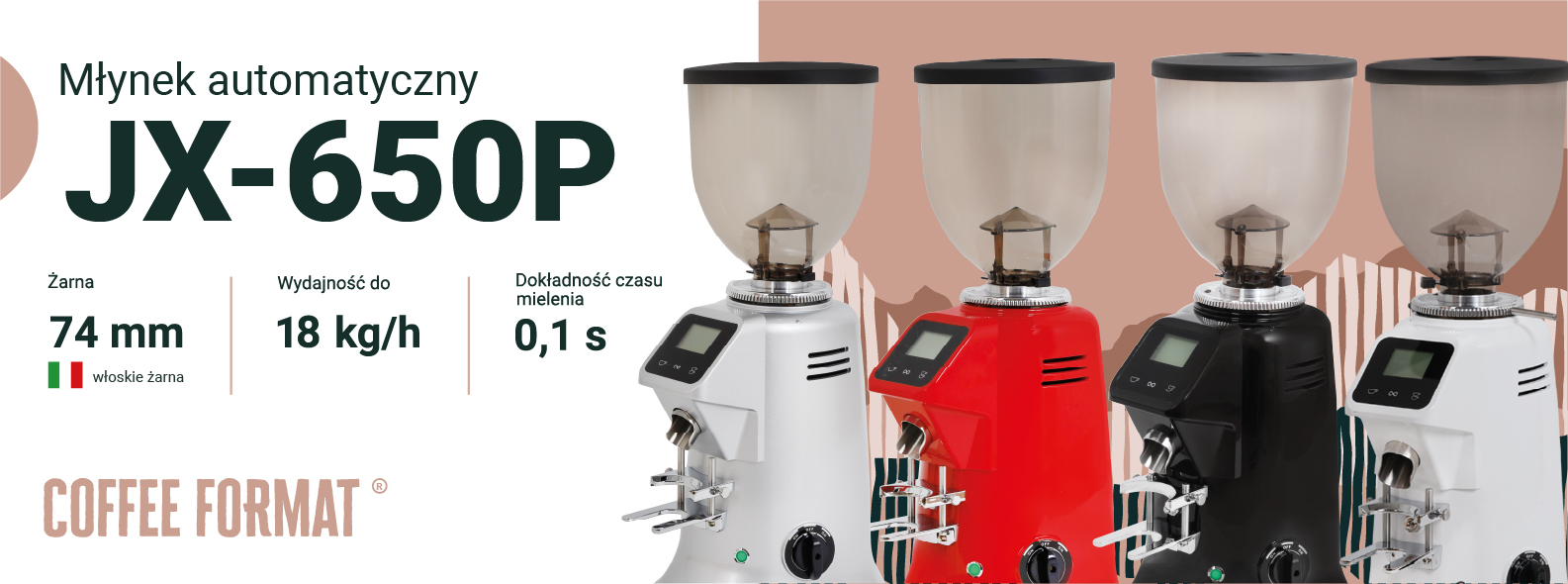 Młynek do kawy Coffee Format JX-650P to profesjonalne urządzenie dedykowane kawiarniom i branży gastronomicznej, gdzie liczy się najwyższa jakość, precyzja i powtarzalność. Solidna konstrukcja, włoskie żarna, elegancki design i intuicyjna obsługa sprawiają, że przygotowanie każdej porcji kawy jest szybkie, wygodne i zawsze utrzymane na najwyższym poziomie.