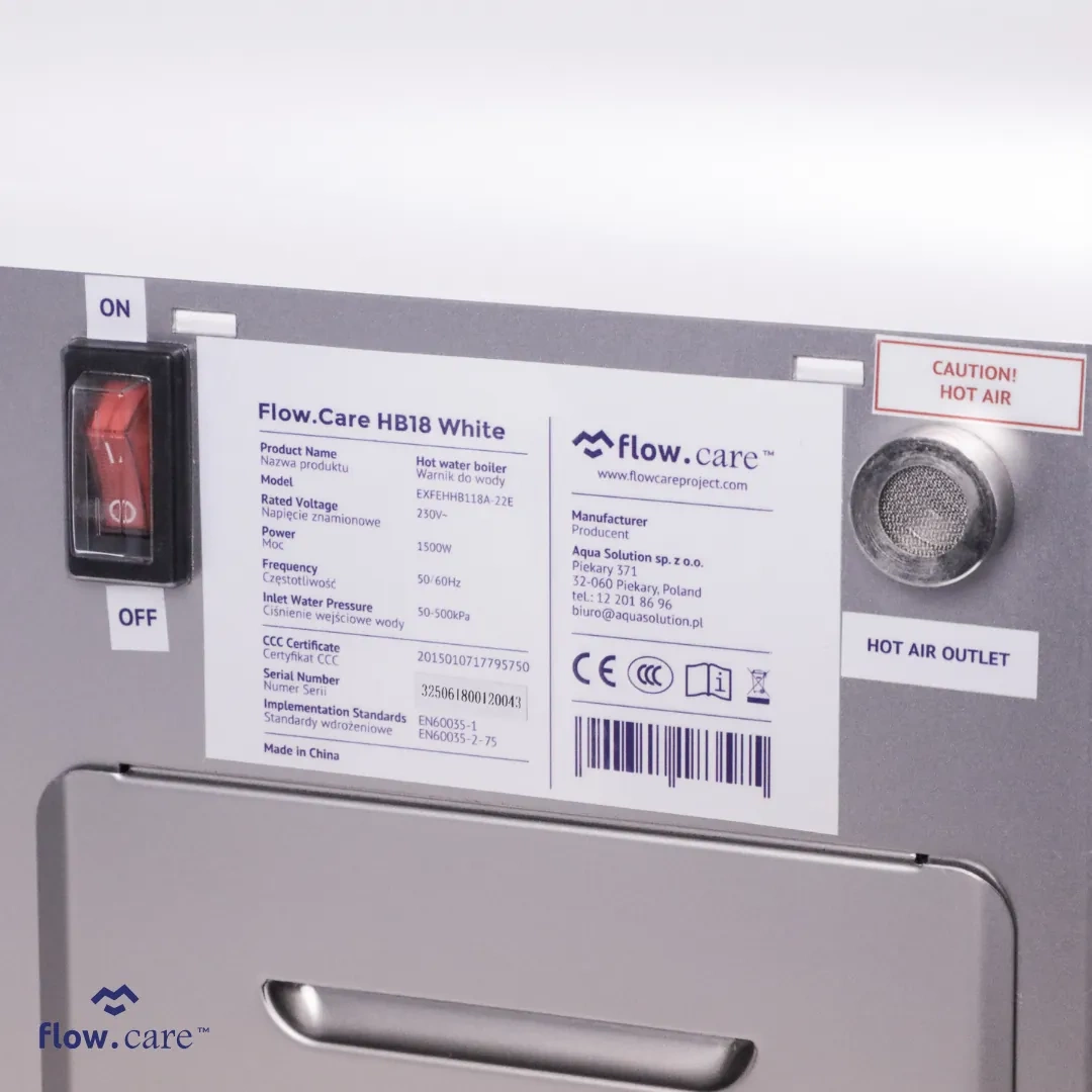 Warnik do wody z wyświetlaczem i programowalnymi przyciskami - FlowCare HB18 w kolorze białym